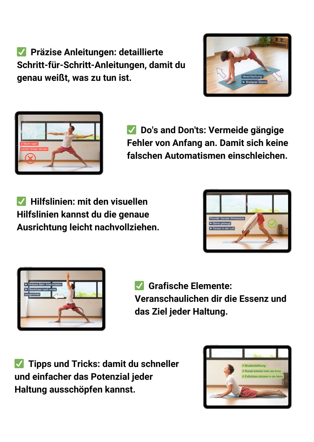 ☞ Aufbau eines soliden Fundamtents: klares Verständnis der Grundhaltungen, mit denen du sicher und selbstbewusst alle anderen Yogastile mitmachen kannst.