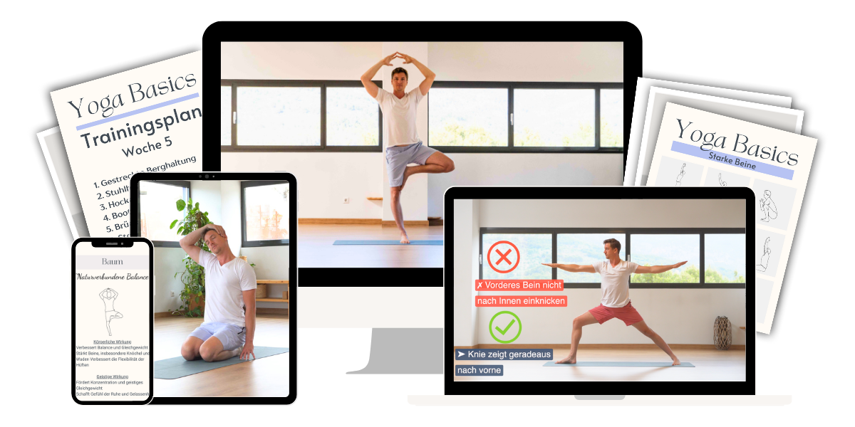 In über zehn Jahren als Yogalehrer habe ich oft beobachtet, wie anfängliche Fehler in den Grundhaltungen zu langjährigen Gewohnheiten werden. Diese kleinen, aber signifikanten Missgriffe beim ersten Lernen beeinträchtigen oft die gesamte Yoga-Erfahrung. Deshalb möchte ich dir einen klaren und einfachen Weg zeigen, wie du die Grundhaltungen von Beginn an richtig lernen kannst, um langfristig eine gesunde und wirkungsvolle Praxis zu erleben. Nur so vermeidest du Verletzungen und um kannst auf lange Sicht die ganze transformative Kraft von Yoga nutzen“